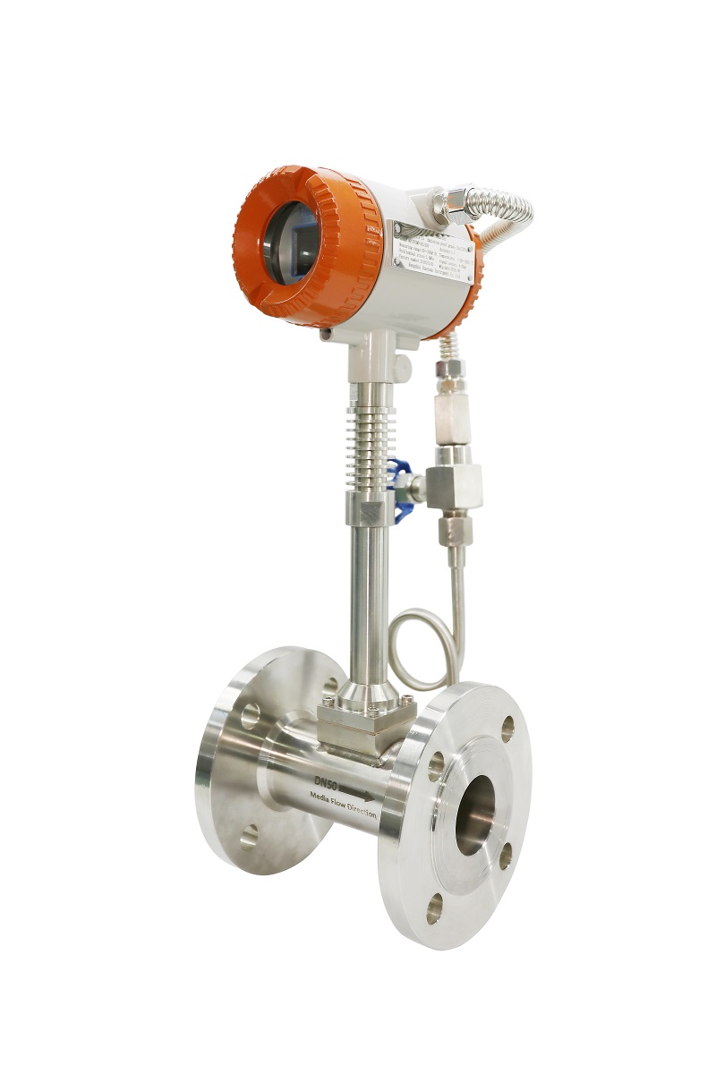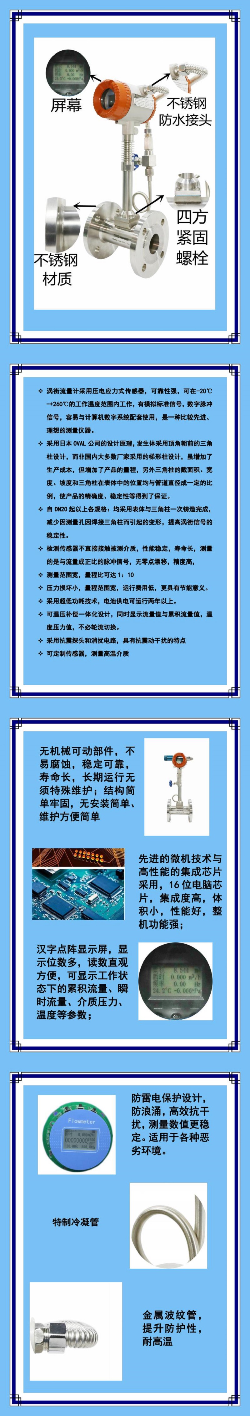 5、依據(jù)被測介質(zhì)的溫度,選用高溫或低溫的渦街流量計。250℃—350℃的高溫型一般情況下配帶散熱器。